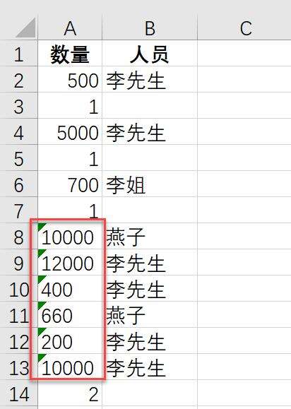 下个问题也很明显,人员没写完整,这样统计的时候也会导致出错。选择区域,按Ctrl+G,定位空值,确定,=上一个单元格,Ctrl+回车。