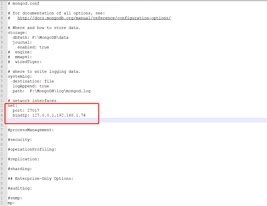 1、打开配置文件/mongoDB/bin/mongod.cfg