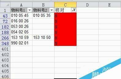 当所有行都核对完后,对核对列筛选“N”,就可以得到两列中差异的数据了。