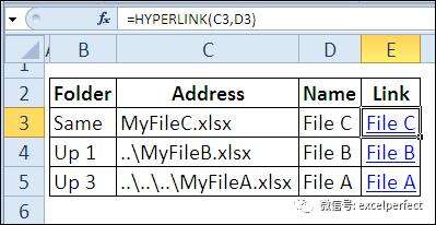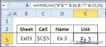 在几种不同的方式来为link_location参数创建文本字符串。在第一个示例中,ADDRESS函数返回在单元格B3中命名的工作表的第1行第1列的地址。