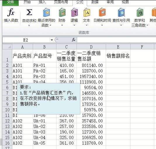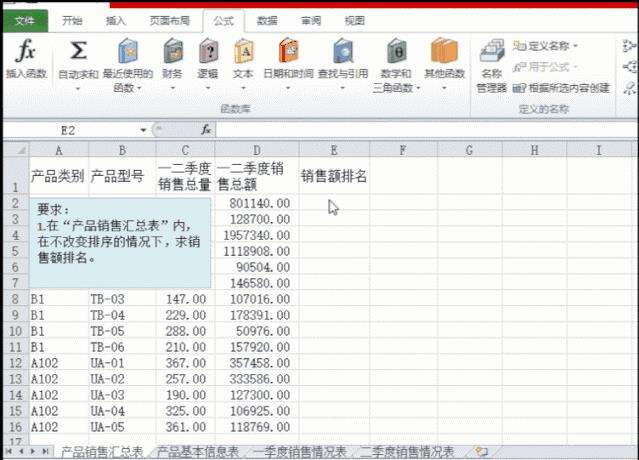 计算机二级Office2010考点利用RANK函数求公司季度销量的排位
