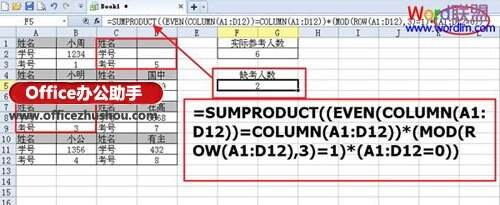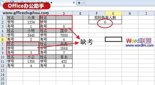 4.同样,以“参加考试”为例,使用上面建立的数据,设置“错过考试的人数”,并在下图中输入数据。注:(a13360d12=0)