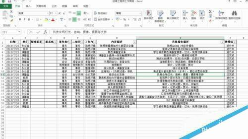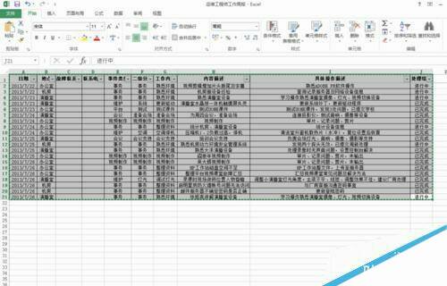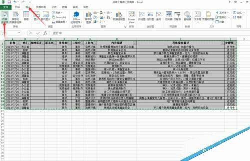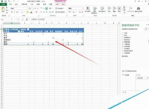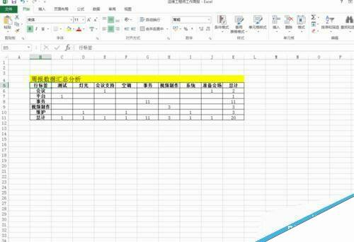 1、打开excel2013,本文以之前的工作周报为例,添加数据透视表。