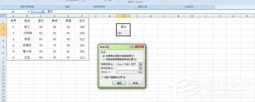 4、这里 “列表区域”,我们将原来整个成绩单选中。