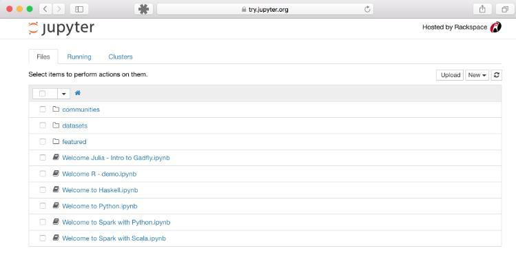 之后,notebook会自动打开你电脑上的默认浏览器,这时你会看到有一系列文件,子目录。大多数情况下,都是你电脑里的一些文件。通常这将是您的主目录。