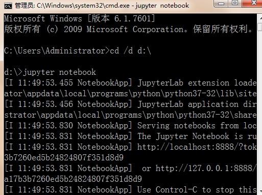 1、在cmd中使用cd命令进入jupyter的工作目录