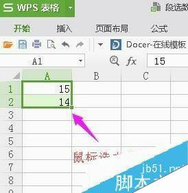 同时选中15和14这两个数字所在的单元格: