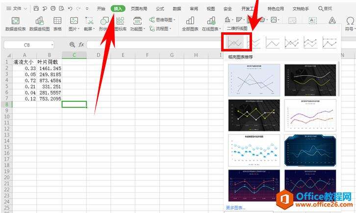 按照图片中的顺序,依次点击插入-折线图-选择折线图样式,可以在以后的工作中选择自己喜欢的格式: