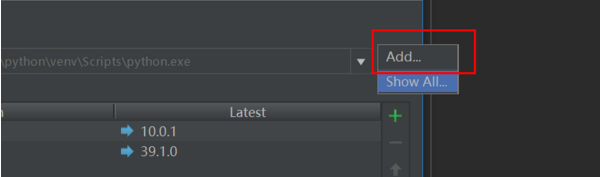 在这个设置的右上角 点击 add 添加我们在安装python环境时,已经安装好了的解释器