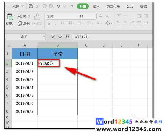 在括号()中填写需要提取年份日期的位置,以图中为例应该填写(A2)