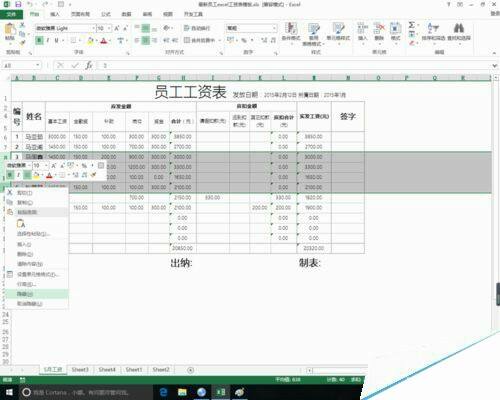 隐藏其中部分单元格。操作方法为在选定单元格区域上使用鼠标右键点击,在右键菜单面板中选择隐藏。