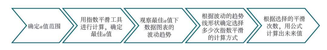 步骤04 判断是否需要进行二次、三次指数平滑。由于步骤03中的趋势线是无规律的曲线波动,不是直线,也不是二次曲线。因此这里确定不需要进行二次、三次指数平滑计算。