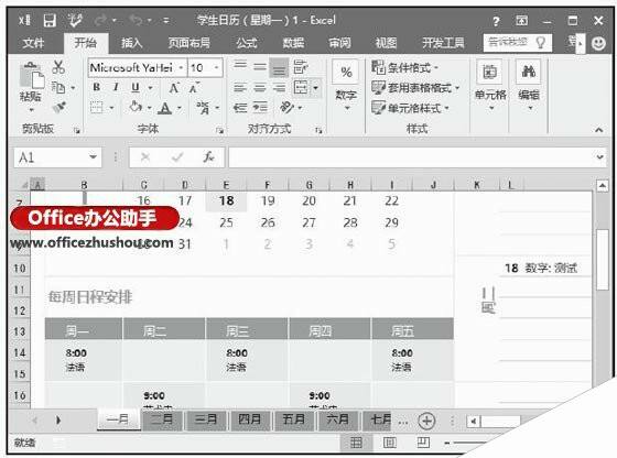 针对这样的工作簿,用户只需根据实际需要进行局部编辑,即可得出满足需要的表格。例如上面建立的“学生日历”工作簿可对每日课程安排、作业等进行编辑。