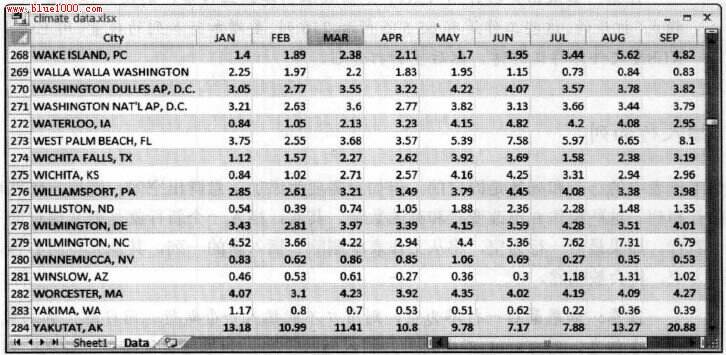 图4.9 当使用表时,向下滚动时在通常出现列字母的地方显示表标题