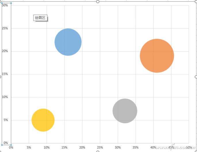 操作同上,依次添加B、C、D产品的数值气泡,这样在一个坐标平面图中,使用不同的气泡就可以表述不同产品的三个指标数值。为了方便进行识别,选中气泡,右击选择“填充“,依次为其填充不同的颜色进行区分(图4)。