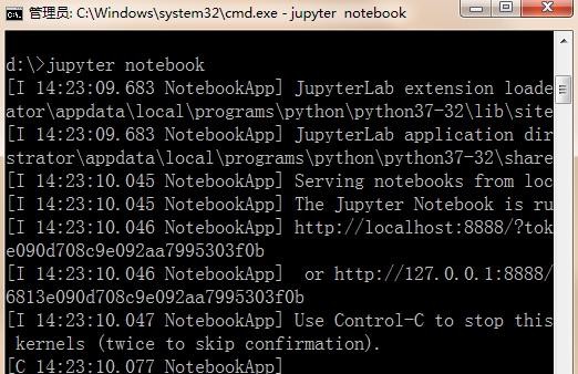 1、在cmd中使用jupyter notebook命令启动jupyter。