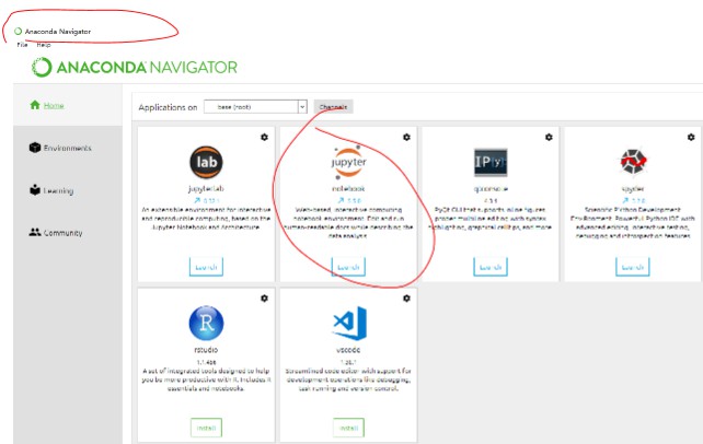 1、安装好Anaconda后从开始菜单栏找到Anaconda Navigator打开后,找到jupyter点击launch。
