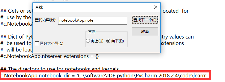产生了配置文件的所在的目录,我的配置文件的目录是C:Userslilong.jupyter