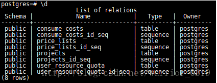 h #查看所有的sql关键字 ? #命令行操作的帮助 d #查看当前schema 中所有的表 q #退出pg命令行 d #schema.table 查看表的结构 x #横纵显示切换 dT+ #显示扩展类型相关属性及描述 l #列出所有的数据库 iming #显示执行时间 c database_name #切换数据库 set search to schema #切换schema explain sql #解释或分析sql执行过程