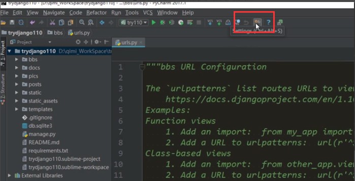 当然你也可以直接点击工具栏中的settings按钮,如下图所示