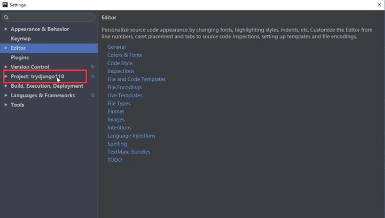 在弹出的settings界面中,我们选择project选项,project后面的名字就是你打开的当前项目名,如下图所示