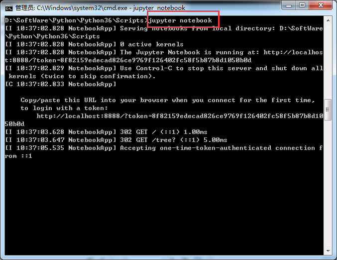 安装成功后在命令行使用下面的命令即可启动 jupyter notebook