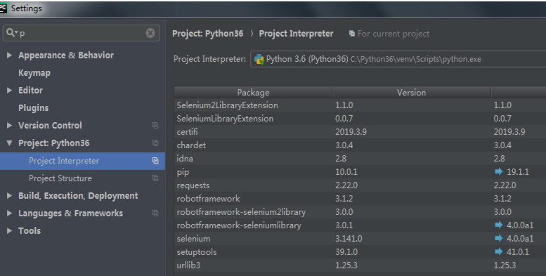 PyCharm入口:File—Settings…—Project:Python xx—Project Interpreter