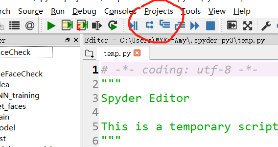 第一步:打开Spyder,找到 工具栏的 projects
