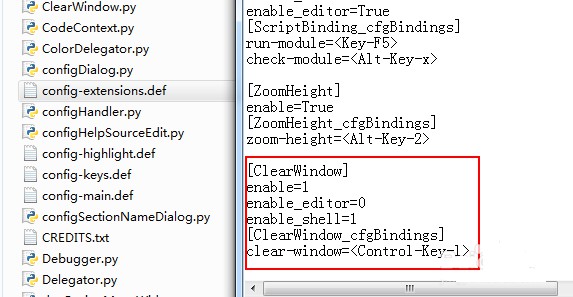 在Python XLibidlelib目录下找到config-extensions.def(IDLE扩展的配置文件),用记事本打开