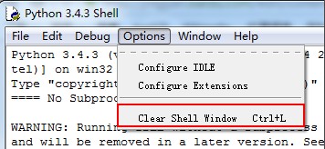 打开Python的IDLE,options选项中就可以看到增加了Clear shell window ctrl L