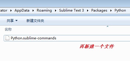 在python文件夹里,我们再建一个文件命名为 Python.sublime-commands,如图所示: