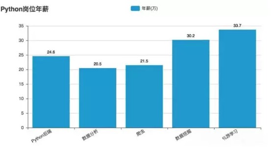 这里对5000多的职位的样本数据进行初步分析,我取了最大年薪然后取均值来统计。发现AI岗位薪资还是摇摇领先。机器学习的岗位年薪过30多万非常平常,好一点的都是50W,比数据分析岗位和爬虫岗位工资高了近50%,人工智能薪水真的很肥!
