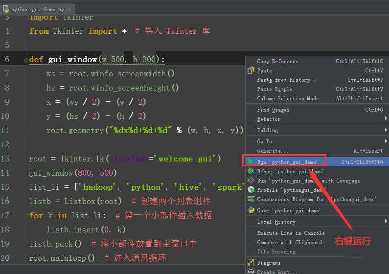 右键选择python_gui_demo运行即可。