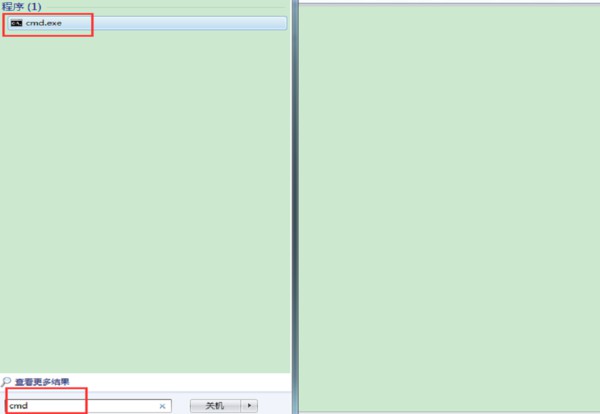打开“开始”菜单,输入“cmd”,打开命令提示符窗口: