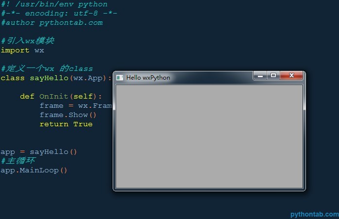 使用的是python的GUI模块–wxPython。非常简单,就是调用出一个windows窗口,并设置窗口的标题。