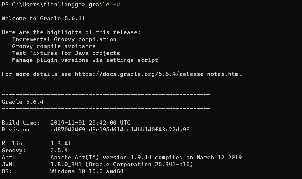 执行 gradle -v 查看安装情况: