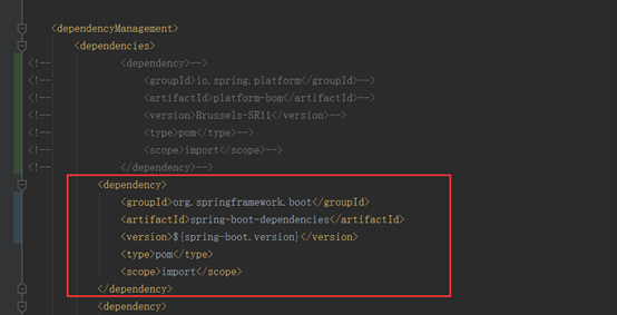 添加dependencyManagement的springboot依赖