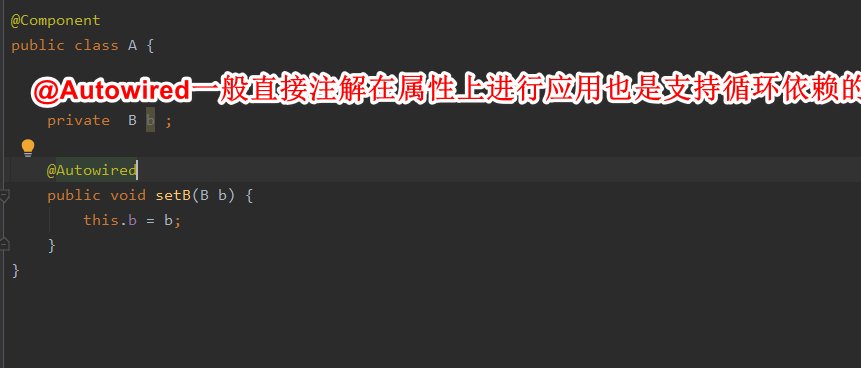 3:B顺利完成初始化,将自己放到一级缓存里面(此时B里面的A依然是创建中的状态)然后接着回来创建A,此时B已经创建结束,直接从一级缓存里面拿B,并将A自己放到一级缓存里面。