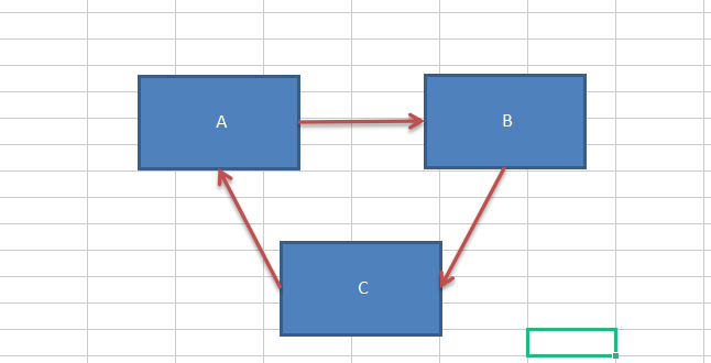 Spring循环依赖面试中也会被常常问到。但是它的整个过程很多人都不知道,什么叫循环依赖呢。多个Bean之间相互依赖,形成一个闭环。如下图(A,B,C分别为Spring容器中3个Bean)就能很好的描述。(PS必须保证默认的Bean都是单例的循环依赖才成立)。