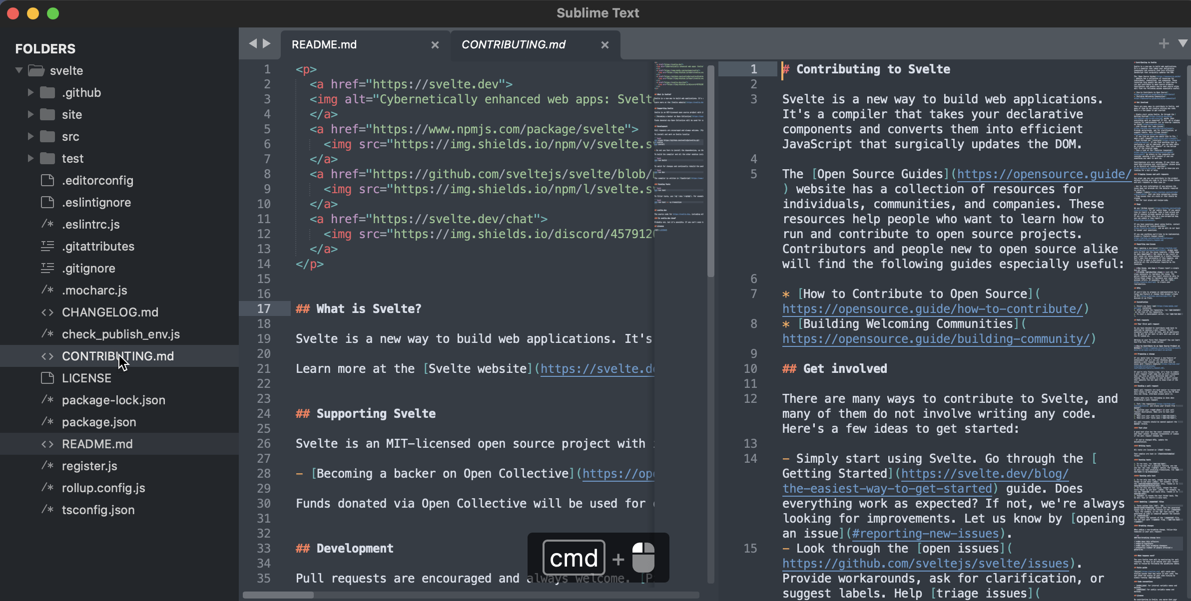 Sublime Text 也是一款老牌的代码编辑器,也支持跨平台,功能、使用体验也比 Notepad++ 丰富得多,最大的亮点就是支持丰富的插件。