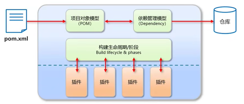 提供了一套标准化的构建流程(编译,测试,打包,发布……)