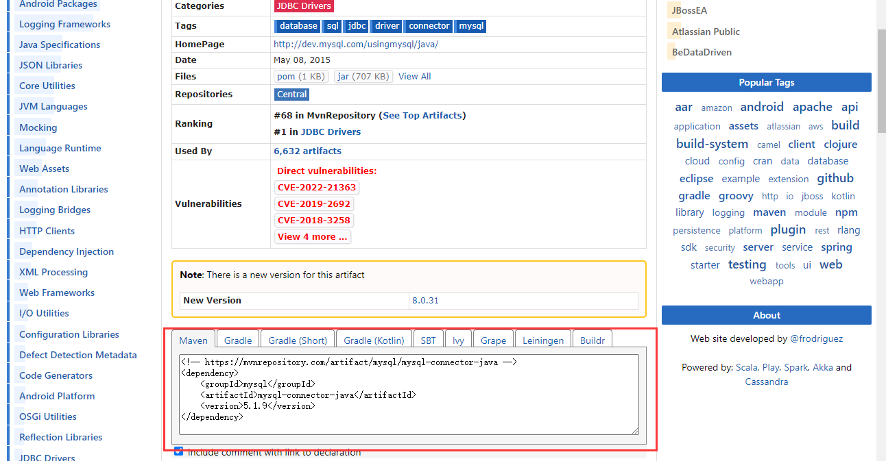 其中的坐标信息有相关的网站可供查找:https://mvnrepository.com/