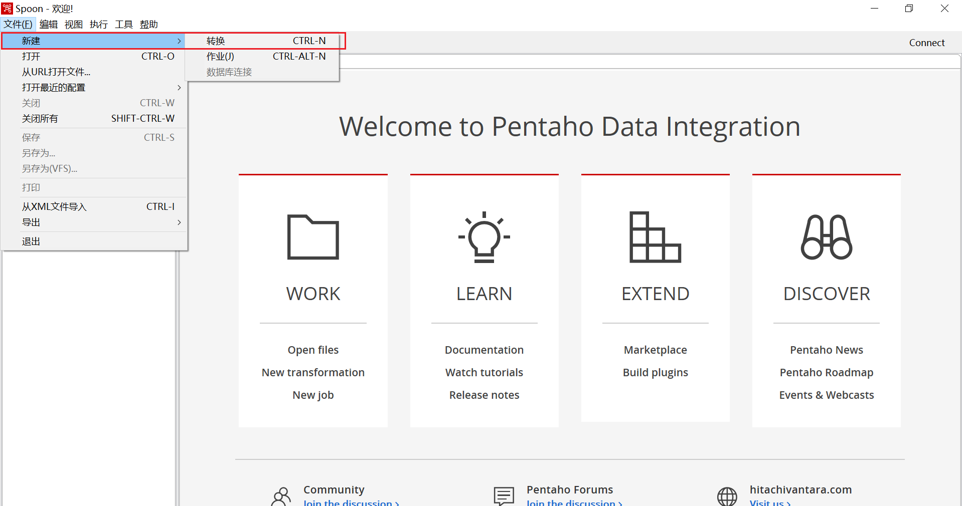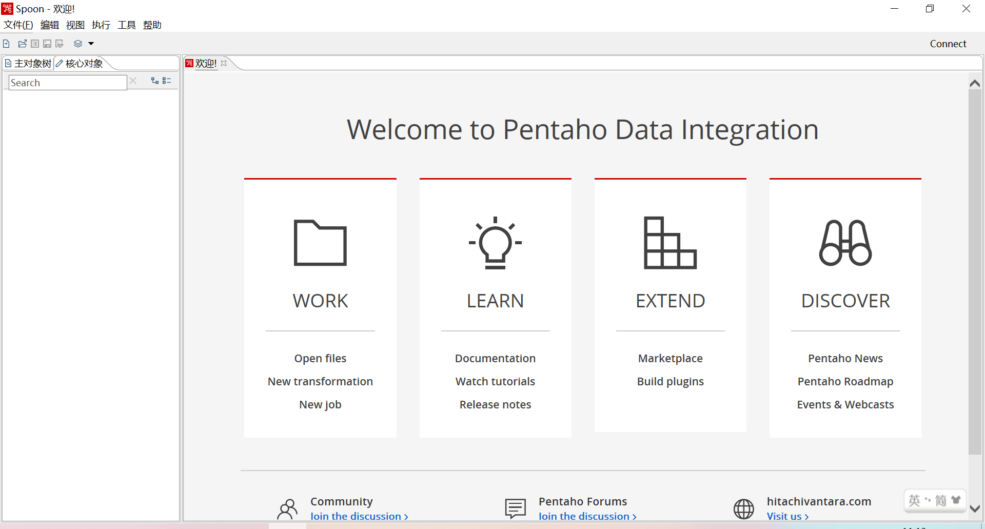下载完成后是一个压缩包,免安装的,选择一个路径,将压缩包解压,解压后进入到data-integration目录,该目录下有一个Spoon.bat文件,双击即可运行
