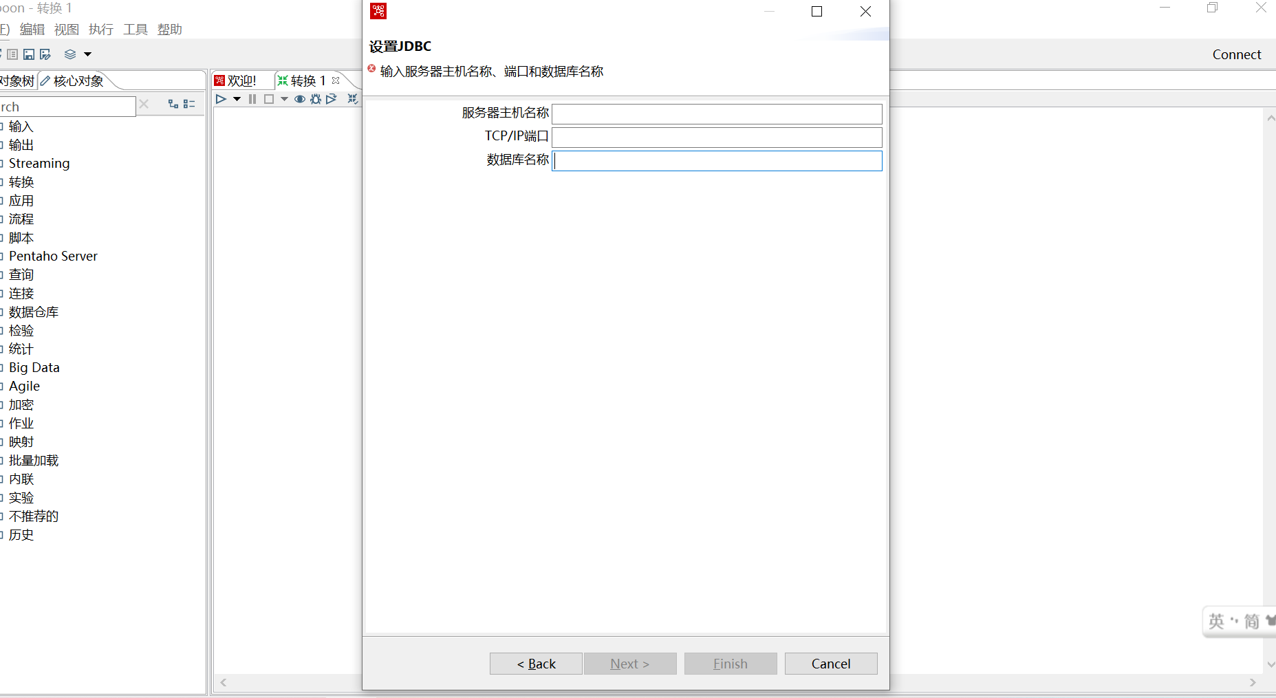 第一步(这一步讲述了下载kettle、创建数据库连接、转换等,如果这一步会的可以略过,直接看第二步)
