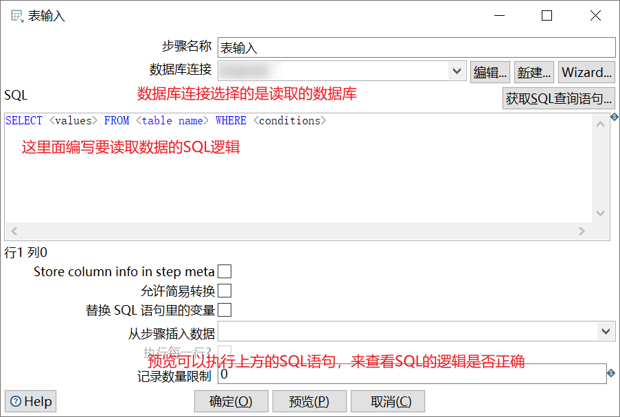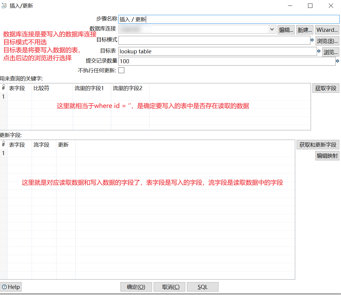 创建好节点连接后,就需要编辑表输入和插入/更新了,表输入就是要读取的数据,插入/更新就是要写入的数据,双击表输入
