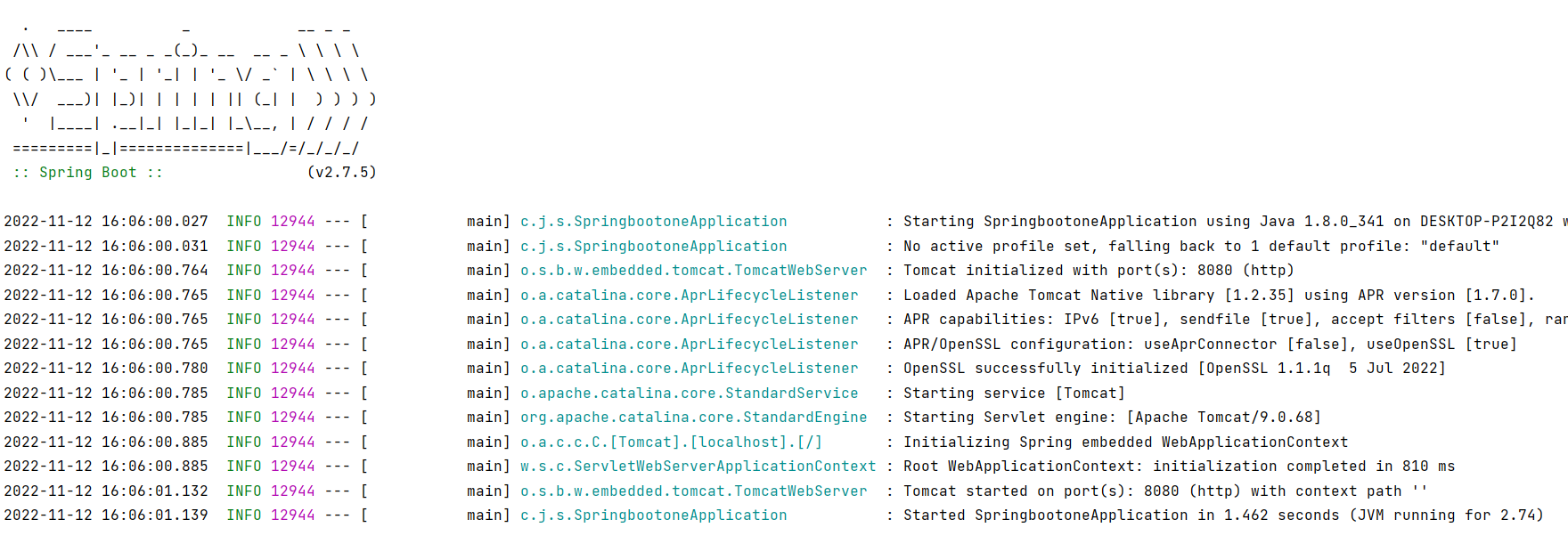 我们可以看到项目在启动的过程中是启动了Tomcat服务器的,这说明SpringBoot中内嵌了Tomcat服务器。那么SpringBoot可以用其他服务器吗?当然可以,只不过Tomcat服务器是默认的就是了。