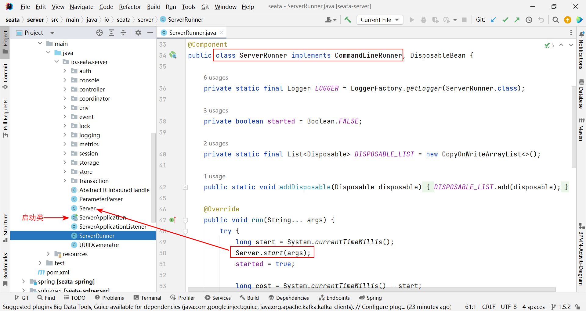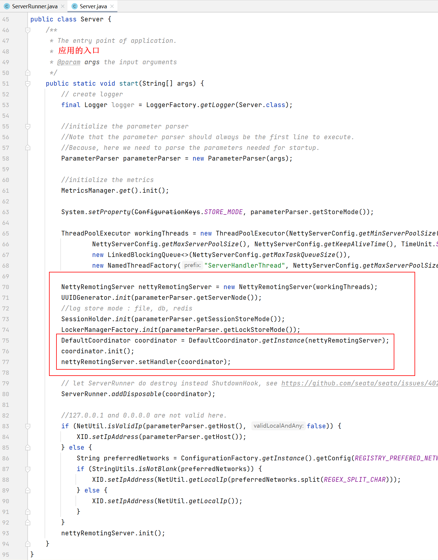 启动类 ServerApplication 没什么好说的,重点是ServerRunner