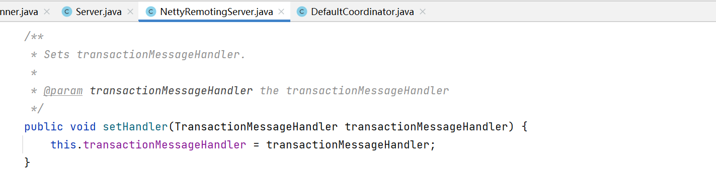NettyRemotingServer#setHandler()设置的正是TransactionMessageHandler