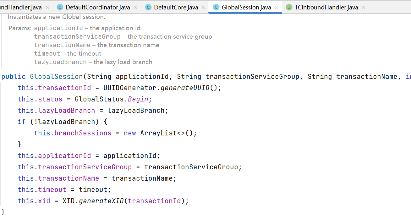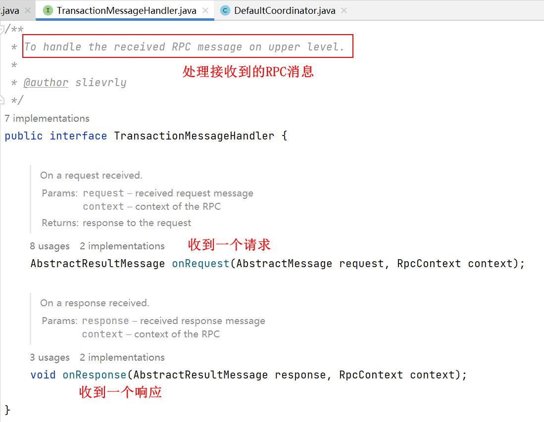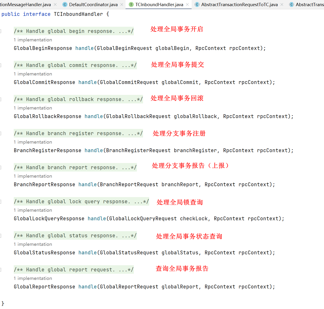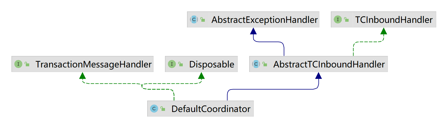 DefaultCoordinator实现了TCInboundHandler接口,所以它不仅是一个TransactionMessageHandler,还是一个TCInboundHandler