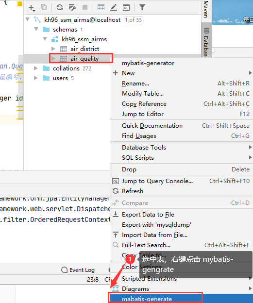 2.2.2.1 选中表,右键点击 mybatis-gengrate